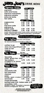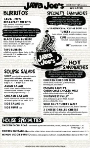 Java Joe's Breakfast Burrito..................................................................................................................... 7.50